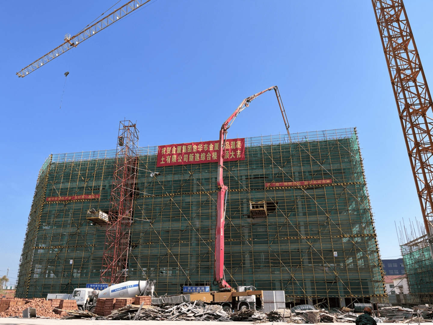 7月23日,金華市金廈商品混凝土有限公司綠色環(huán)保遷建項目綜合辦公大樓順利結頂,這標志著該項目建設完成了主體工程,距離項目竣工交付又邁進了重要的一步。