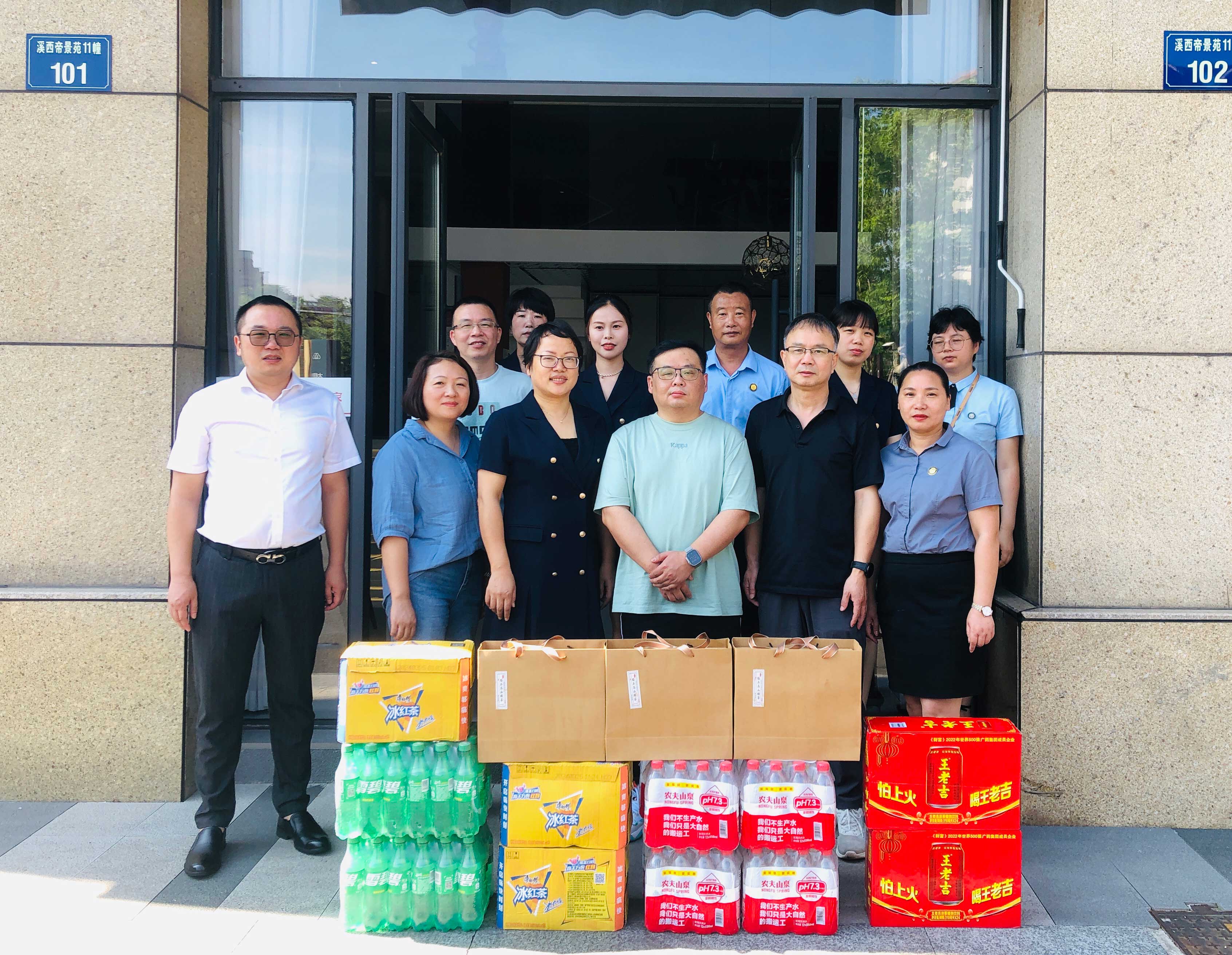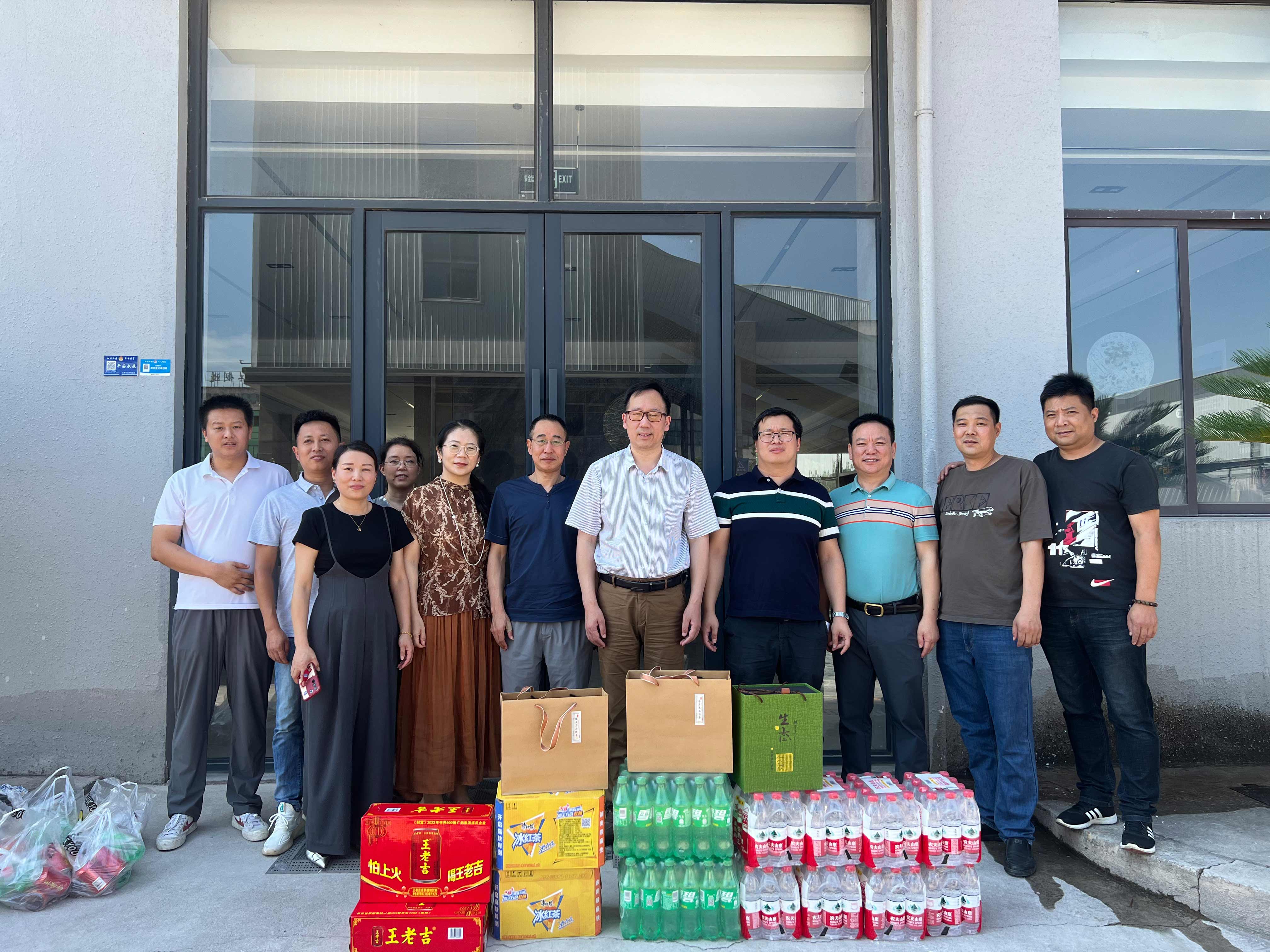 集團(tuán)高管層分三路慰問(wèn)近20家子公司。走訪中,集團(tuán)領(lǐng)導(dǎo)深入子公司生產(chǎn)場(chǎng)地,了解各家公司的生產(chǎn)任務(wù)安排和員工的作息排班情況?!按蠹倚量嗔?,高溫天氣一定要做好防暑降溫工作!”在高溫工作現(xiàn)場(chǎng),傅融總裁代表集團(tuán)向奮戰(zhàn)在一線的員工致以親切的問(wèn)候,并為他們送上冰紅茶、王老吉、礦泉水等清涼物資,對(duì)他們?cè)诟邷叵聢?jiān)守崗位表示感謝。傅總叮囑大家工作中要增強(qiáng)安全防護(hù)意識(shí),落實(shí)好防暑降溫措施,確保安全生產(chǎn),平安度夏。
